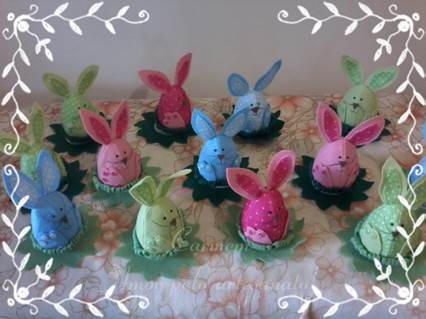 Hoje mostro o restante dos coelhos que montei sobre os ovos de plástico.